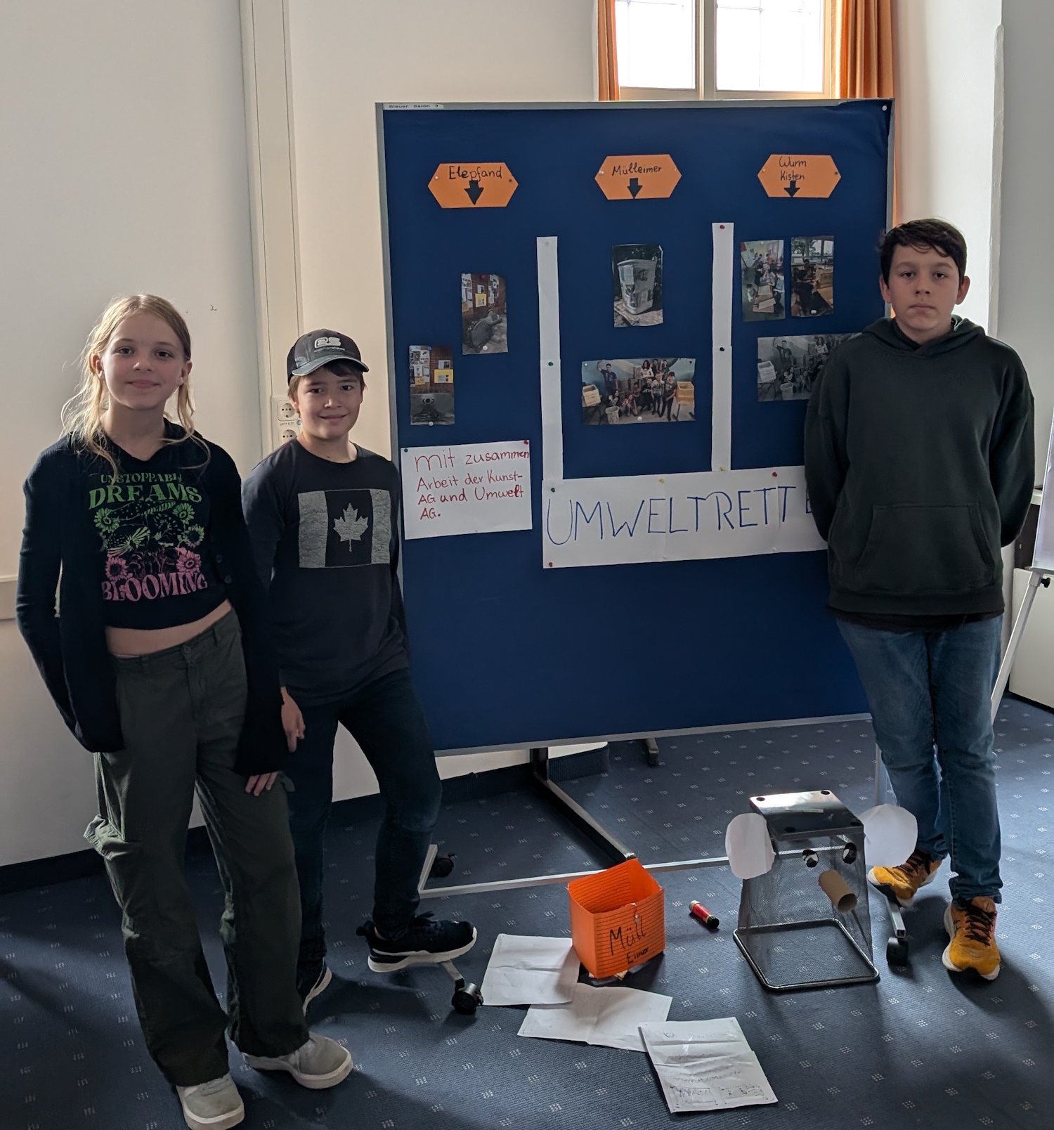 Vor Ort wurden wir herzlich von den Veranstaltern begrüßt und lernten die anderen Gruppen aus insgesamt 21 Schulen aus ganz Bayern kennen. Nach ein paar Warm-Up-Spielen wurden wir mit unterschiedlichen Räume eingeteilt. Dort sollten wir weiter an unserem Projekt arbeiten und einen sogenannten Pitch erarbeiten. Unser Projekt beschäftigt sich mit der fehlenden Mülltrennung an unserer Schule. Aufgrund dieser Problematik entwickelten wir von den umWeltrettern ein paar kleine Ideen, wie wir, trotz der fehlenden „gelben Tonne“ im Landkreis Regensburg, den Müll ein wenig besser trennen können. Wir bauten Wurmkisten für die Schulküche, brachten den ElePfand dazu sich um die Pfandflaschen auf dem Schulgelände zu kümmern und verschönerten die Papiereimer, um auf eine bessere Mülltrennung hinzuweisen. Durch die Coaches und anderen Gruppen erhielten wir professionelle Hilfe und konnten dank des Feedbacks unsere Präsentation und unser Auftreten dabei verbessern. Nach dem vorzüglichen Abendessen in den prunkvollen Sälen durften wir das Kloster auf eigene Faust erkunden.