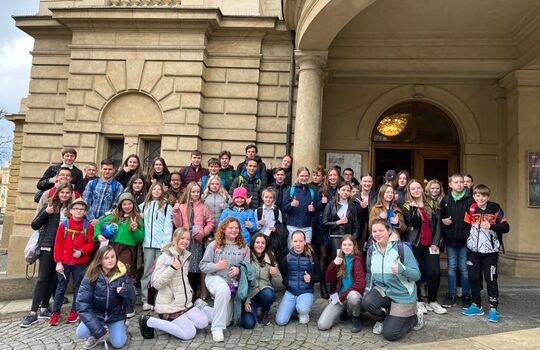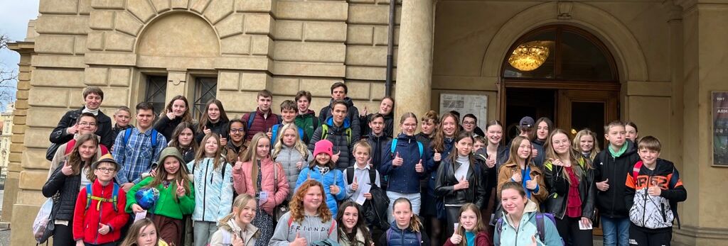 Am Dienstag, den 25. April 2023, machten sich einundvierzig Schülerinnen und Schüler der Max-Ulrich-von-Drechsel Realschule aus den Jahrgangsstufen fünf bis zehn gemeinsam mit einigen Schülern der Staatlichen Realschule Neutraubling im Rahmen der Wahlfächer Tschechisch und Big Band gemeinsam mit dem Bus auf den Weg nach Tschechien, um dort eine Opernaufführung in tschechischer Sprache zu besuchen.